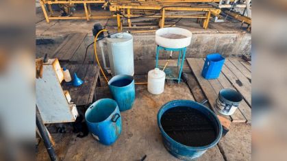 No local, que foi isolado por conta do risco químico e ambiental, foram presas quatro pessoas em flagrante. Também foram apreendidos mais de 2 mil kg de carvão contaminado com cianeto, equipamentos utilizados no beneficiamento mineral e munições de calibre 7.62 mm, de uso restrito.