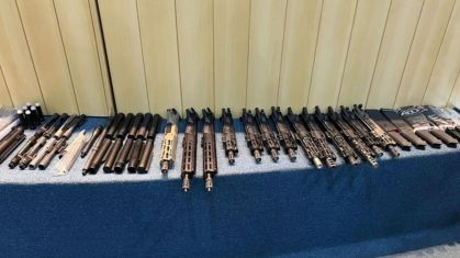 Ao todo foram apreendidos dois veículos, mais de 900 munições de fuzil e de outras armas, uma pistola, dezenas de frascos de anabolizantes e centenas de peças de armas longas, como canos, coronhas, miras holográficas e carregadores.