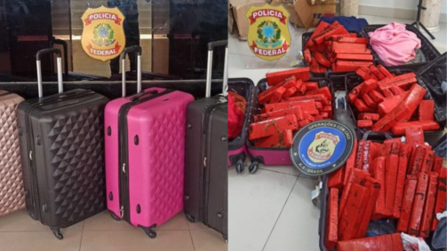 A Polícia Federal prendeu duas passageiras que foram flagradas transportando 132 tabletes de maconha distribuídos em quatro malas no Aeroporto Internacional de Fortaleza, na tarde desta quinta-feira (7).