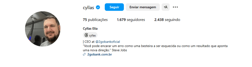 Em uma busca nas redes sociais, a versão do delator se confirma, já que o policial se apresenta como CEO do 2 Go Bank. Procurada, a instituição informou que está colaborando com as investigações e segue à disposição das autoridades (abaixo, a nota completa).