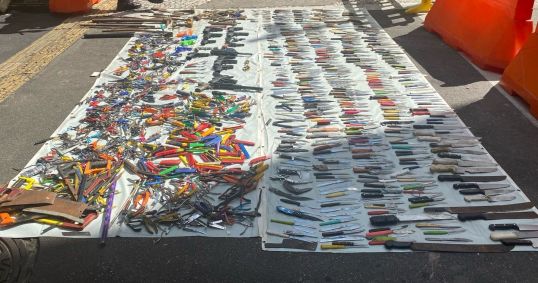 Entre os objetos apreendidos estão: 534 facas, 315 tesouras, 104 chaves de fenda, 102 alicates, 87 martelos/marretas, 68 estiletes, 54 serras/serrotes, 21 simulacros, 12 garfos e dois socos-ingleses. Os itens estavam com pessoas que frequentam a região para uso de drogas.