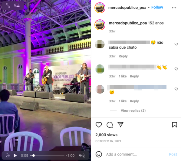 A cobertura do espaço também é diferente da que aparece no local do vídeo. A comparação pode ser feita com postagem na conta no Instagram do mercado de Porto Alegre: