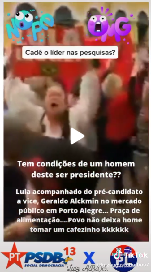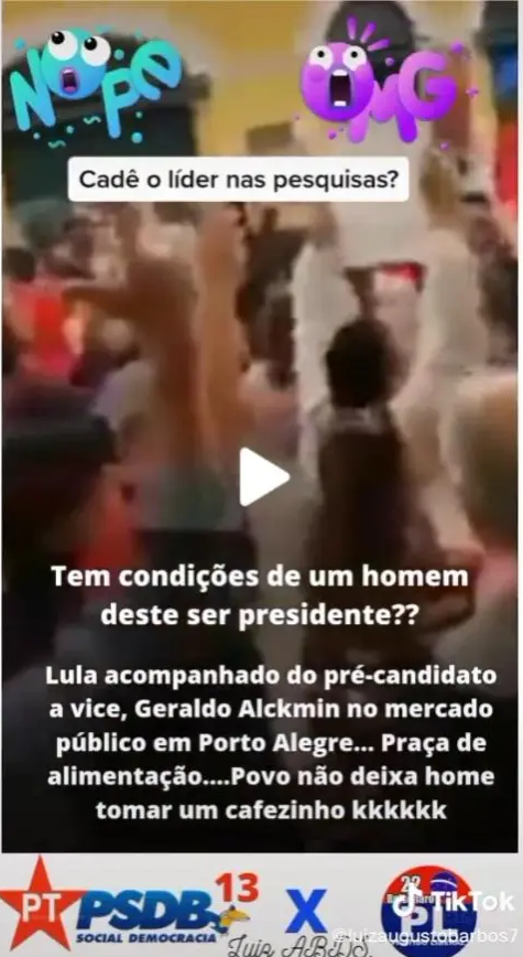 Conclusão do Comprova: É enganosa a postagem que viralizou no TikTok, feita no dia 6 de junho, que afirma que Lula e Alckmin foram hostilizados durante visita ao Mercado Público de Porto Alegre (RS). O post destaca a seguinte frase: “Cadê o líder nas pesquisas?”, como forma de desacreditar as pesquisas recentes de intenção de voto, que são favoráveis a Lula.