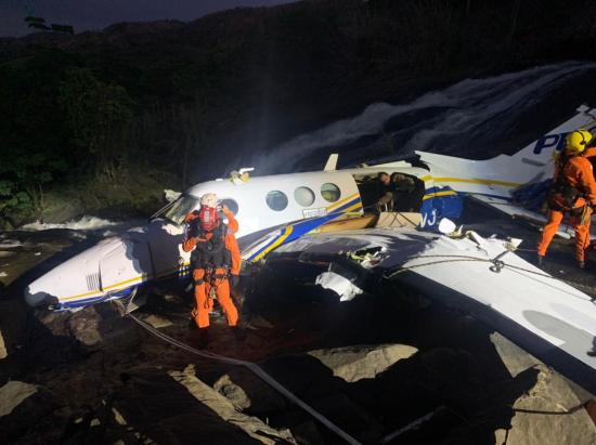 Foram encontrados destroços de uma antena no local. A Companhia Energética de Minas Gerais (Cemig) informou que o avião bimotor atingiu um cabo de uma torre de distribuição da companhia.