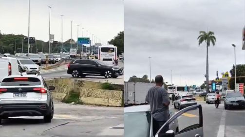 Em vídeos que circulam nas redes sociais, é possível ver veículos seguindo na contramão para fugir da ação criminosa, na Avenida Brasil, na altura do Mega Box, no bairro da Penha.