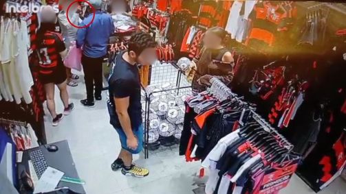 Câmeras de segurança flagraram um furto a um cliente em uma loja do Flamengo, em Ipanema, na Zona Sul do Rio de Janeiro. O crime aconteceu por volta das 14h desta terça-feira (5).