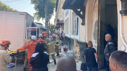 Caminhão desgovernado bate em muro da sede do Vasco no Rio