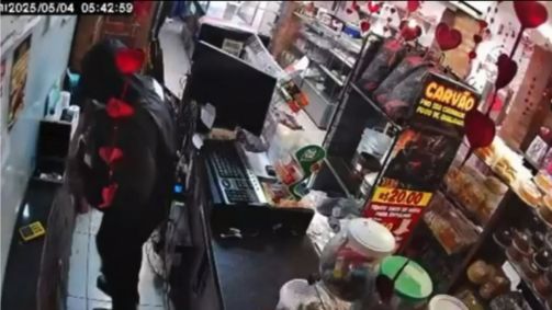 As imagens das câmeras de segurança mostram os suspeitos entrando no comércio, rendendo uma funcionária e recolhendo dinheiro, celulares e outros pertences. Segundo a polícia, toda a ação durou cerca de um minuto, antes que eles fugissem do local. Os criminosos levaram aproximadamente R$ 8 mil.