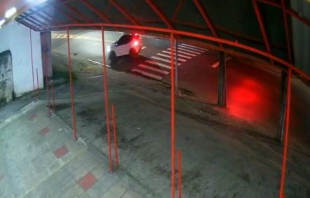 Quando os bandidos se aproximam, moto e veículo passam direto e depois retornam. Até que os criminosos saem do carro e atiram várias vezes contra os médicos.