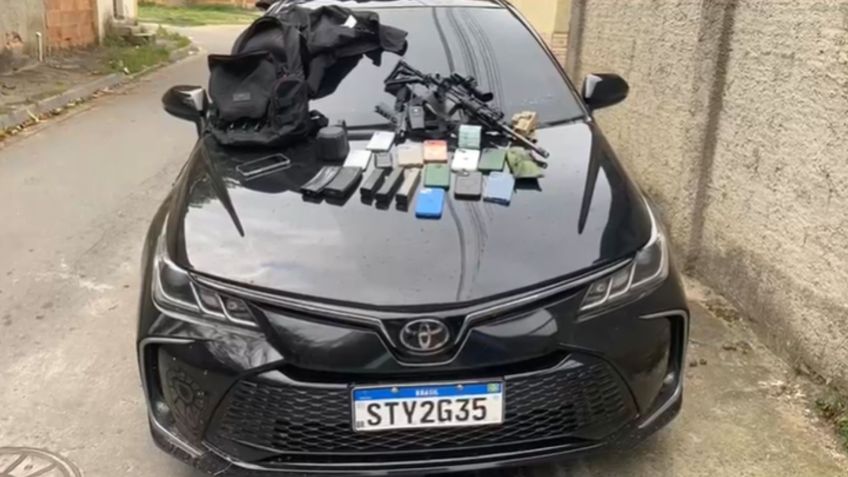 Na ação, que aconteceu nesta terça-feira (14), policiais civis apreenderam um fuzil calibre 5,56 mm, uma pistola Glock calibre .40, munições, carregadores, um rádio comunicador, um giroscópio, um caderno com anotações de cobrança, placas de veículos e R$ 19.500 em espécie. De acordo com a Polícia Civil, todo o material estava dentro de um carro modelo Toyota Corolla preto.