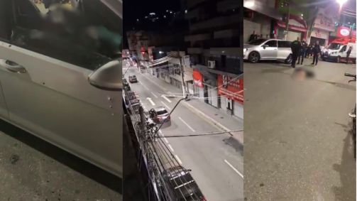 Policiais militares foram acionados e, ao chegarem no local, encontraram um veículo com diversas perfurações de tiros e duas vítimas em seu interior, além de uma terceira vítima caída no chão.