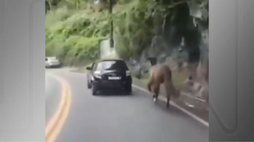 Um homem foi flagrado dirigindo um carro e arrastando um cavalo amarrado por uma corda à traseira do veículo por um longo trecho de via pública em Petrópolis, no Rio de Janeiro, na última sexta-feira (25).