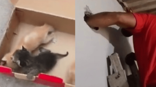 Ação do bem: bombeiros salvam três filhotes de gato presos em parede