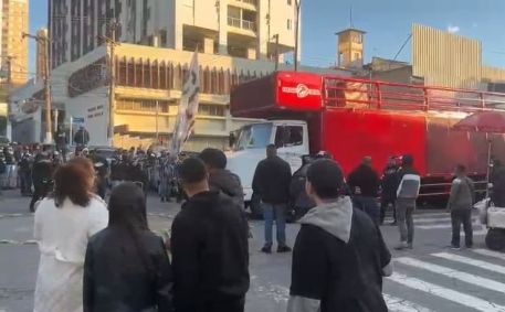 Caminhão é depredado após tocar hinos de rivais em frente ao Corinthians