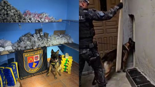 Ao perceberem o comportamento do cachorro, os militares verificaram o espaço e descobriram que havia um compartimento secreto que levava para outro cômodo da casa, onde as drogas foram encontradas (parte delas já embaladas para a venda).