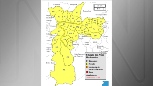 A capital paulista e toda a Região Metropolitana está em estado de atenção para alagamentos na tarde desta quarta-feira (22). Além da previsão para alagamentos, rajadas de vento também podem ocorrer.