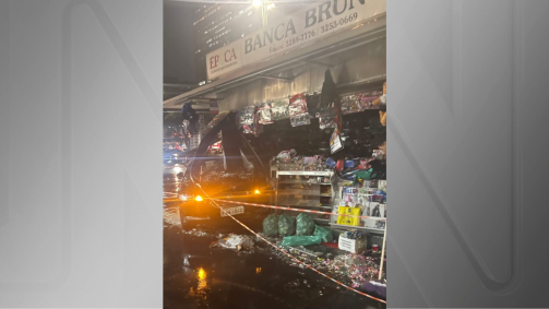 O veículo desgovernado colidiu com a parte da frente da "Banca do Bruno", que precisou ser interditada.