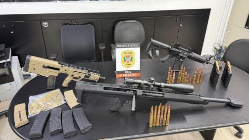 Além dos fuzis, a polícia apreendeu 80 projéteis calibre 5.56 e 20 projéteis calibre .50.