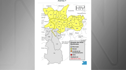 Parte de cidade de São Paulo (SP) entrou em estado de atenção para chuva forte e alagamentos nesta quinta-feira (27).