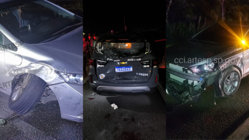 Com o impacto, o veículo foi projetado contra os policiais que realizavam a troca dos pneus. Um terceiro carro, modelo HB20, também se envolveu no acidente.