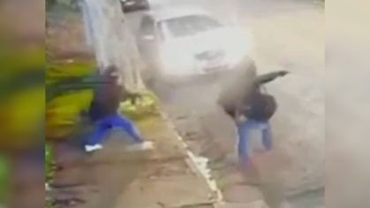 Imagens capturadas por uma câmera de segurança registraram o momento da fuga da quadrilha da mansão. É possível ver os assaltantes entrando em um carro com armas na mão. Veja: