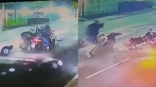 Os três assaltantes estavam em duas motocicletas e abordaram a vítima, que também pilotava uma moto, anunciando o assalto.