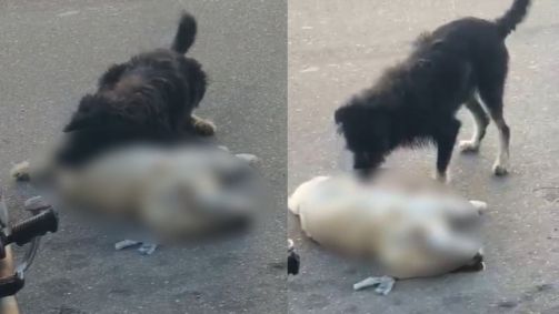 Vídeo: Cachorro tenta "reanimar" cão que morreu após atropelamento