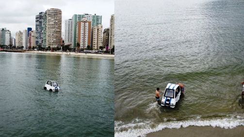 Um carro "anfíbio", que é capaz de se locomover tanto em terra quanto na água,foi apreendido na Praia do Gonzaguinha, em São Vicente, porque não possuía a autorização legal para circular em águas marítimas. Além disso o automovel era de fabricação artesanal.