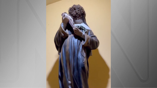 No vídeo publicado pela Paróquia Santa Rita de Cássia, na cidade de Leme (SP), é possível ver que apenas a parte do rosto da santa que dá nome à Paróquia ficou rodeado pelas abelhas.