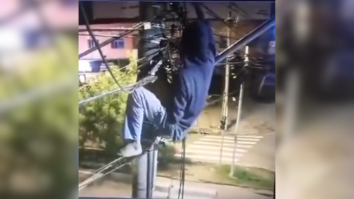 Vídeo: homem é pego em flagrante furtando fiação elétrica em SP