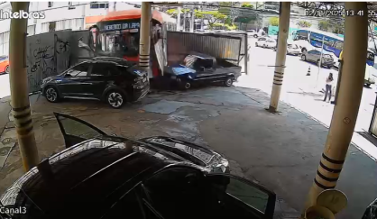 Imagens de câmeras de segurança registraram o momento do acidente. As gravações mostram o ônibus atravessando a via e rompendo o tapume do local. No fim do vídeo, é possível ver alguns passageiros assustados deixando o veículo.