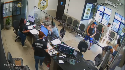 Um vídeo da câmera de monitoramento de uma delegacia mostra o momento em que uma criança de 2 anos de idade chega sem respirar nos braços da mãe.