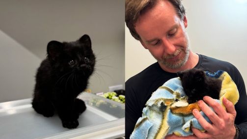Segundo a Fujama, o animal silvestre possui melanismo, uma característica genética que deixa a pelagem escura; filhote foi resgatado nessa terça-feira (26)