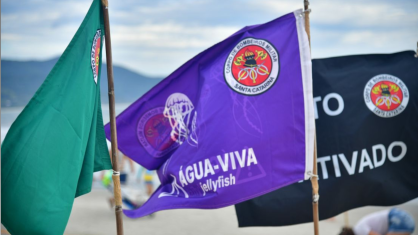 As águas-vivas mais comuns no litoral catarinense são a Água-Viva Reloginho (Olindias sambaquiensis) e a Caravela-portuguesa (Physalia physalis).
