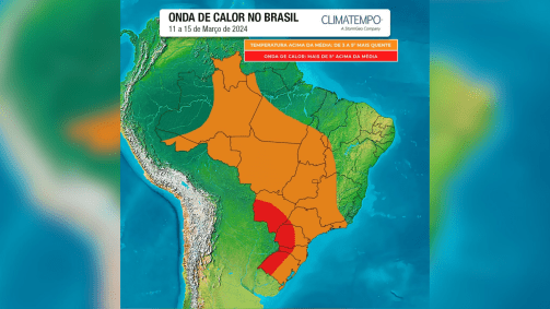 Segundo a Climatempo, as temperaturas devem ficar de 3°C a 5°C acima da média em São Paulo, Rio de Janeiro, Minas Gerais, parte da Bahia, Tocantins, Goiás, Mato Grosso, Pará, Amazonas, Acre, Rondônia e Roraima.