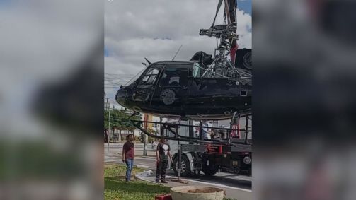 Vídeo: helicóptero da PM bate em placa de trânsito durante pouso em Goiás