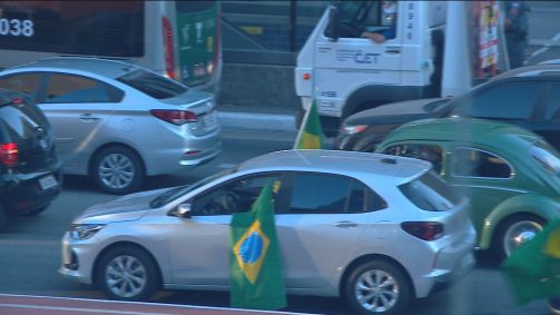 Manifestantes apoiadores do presidente Jair Bolsonaro (sem partido) ocuparam a avenida Paulista na tarde deste domingo (17). A Polícia Militar abordou alguns carros que estavam parados, mas segundo a Companhia de Engenharia de Tráfego (CET), não há interdições de vias. Os agentes calculam cerca de 20 a 30 carros e cerca de 50 pessoas participando do protesto.