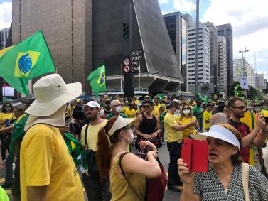 Na capital paulista, manifestantes ignoraram a restrição das autoridades estaduais, que vetaram eventos com mais de 500 pessoas como medida preventiva à proliferação do novo coronavírus. Embora não tivessem autorização da CET (Companhia de Engenharia de Tráfego), os organizadores entraram na Avenida Paulista com um carro de som por volta das 15h30.
