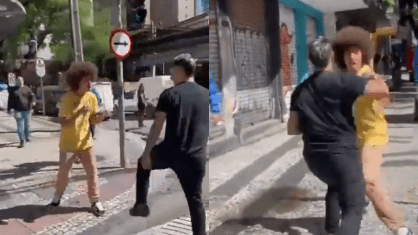 Em outro vídeo, o homem não identificado e Renato trocaram socos enquanto cruzavam uma faixa de pedestre. Populares que presenciaram a situação apartaram a briga.