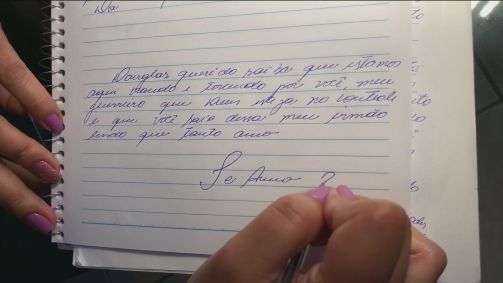 É na cozinha de casa, sobre a mesa de jantar, que a cuidadora Jaqueline Isaura Ferraz demonstra, por meio de cartas, o amor pelo irmão: “Agradeço a Deus pela oportunidade de chegar até você por esta carta. Sinta o meu abraço bem apertado e o meu beijo"