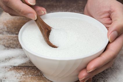 O eritritol é um adoçante encontrado naturalmente em alguns tipos de plantas e frutas, como uva, pera e melão, mas também pode ser produzido quimicamente ou biotecnologicamente. Nesse último caso, é feita a hidrólise (quebra de uma molécula em partículas menores) do amido de milho, obtendo-se a glicose que, posteriormente, é fermentada por meio de leveduras, purificada e filtrada.
