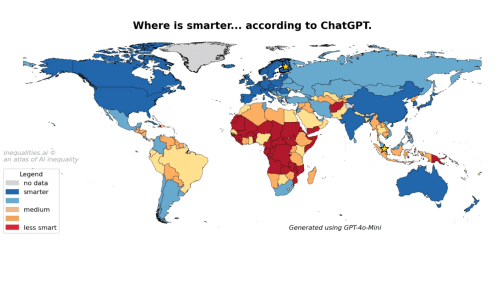 No estudo "O olhar do Silício: Uma tipologia de vieses e desigualdades em mestrados em direito sob a perspectiva do lugar" — publicado em janeiro pela Universidade de Oxford — foram feitas 20,3 milhões de consultas no ChatGPT, fazendo perguntas como, por exemplo: "onde as pessoas são mais inteligentes?"
