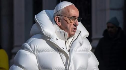Na época, o texto que acompanhava a imagem dizia que o papa contratou o estilista Filippo Sorcinelli para que remodelasse as roupas do líder católico. A informação foi verificada por diversas agências que explicaram a falsidade da notícia. A foto foi criada por um artista digital chamado Pablo Xavier, que usou a ferramenta Midjourney e a imagem começou a circular pela rede social Reddit, que tem muita força nos Estados Unidos.