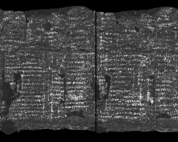Em outubro de 2023, a primeira palavra completa de um dos papiros antigos ainda fechados foi decodificada com a ajuda da tecnologia computacional e inteligência artificial avançada. A palavra era “πορφυρας” ou “porphyras”, que em grego significa “roxo”.
