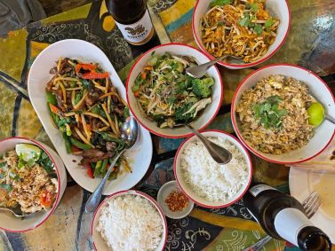 A maioria dos pratos principais não passa de US$ 15, como o pad thai, o arroz frito e o curry. O menu ainda tem pato crocante com manjericão, mix de legumes da época e uma salada de mamão verde com tomate, amendoim e vagem com molho de limão no estilo tailandês que é pedida certa - só experimentei uma salada parecida na própria Tailândia.