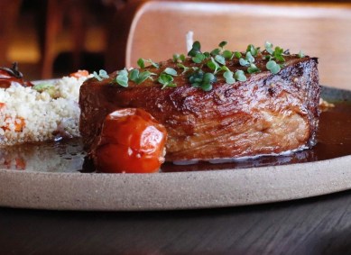 Cupim braseado com couscous cítrico e molho demi-glace do menu executivo de delivery do Flor Negra (Foto: Marcelo Dantas/Flor Negra)