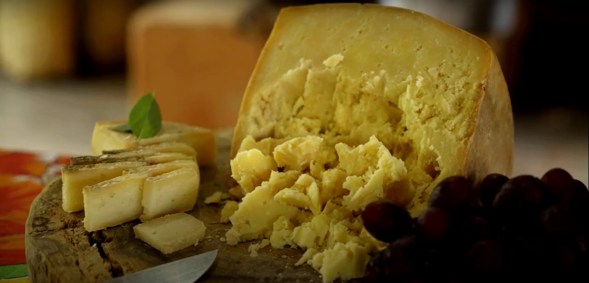 Queijo "Grana dos Laura" da família dos Parmesãos, de massa dura, prensada e de longa maturação, leva esse nome, “Grana”, por ter sua coalhada inicial reduzida a pequenos grãos, e “dos Laura” porque é um resgate da história da produção pela família Laura, reconhecida da região (Foto: CNN Viagem & Gastronomia)