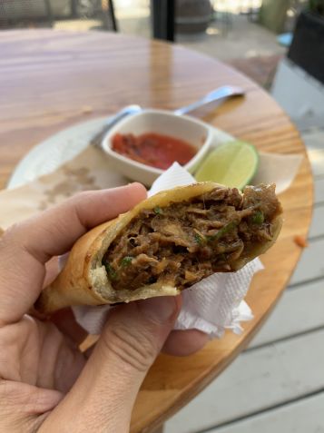 Recentemente provei a de camarão, que era um especial da temporada, com camarões frescos diretamente vindos da Laguna de José Ignácio, e também a de carne, bem desfiadinha e suculenta. Não é raro aparecem no menu opções vegetarianas.