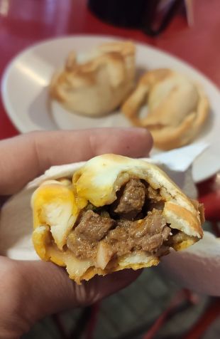 No entanto, as empanadas são fritas na hora, a variedade de sabores é grande, o preço é um dos mais econômicos, e a de carne moída, em especial, veio bem temperada com pimentão e ovos.